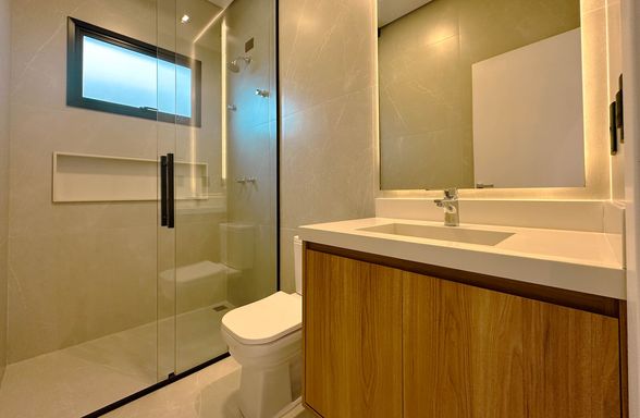 Inclui banheiros, lavabos, suítes e demi-suítes